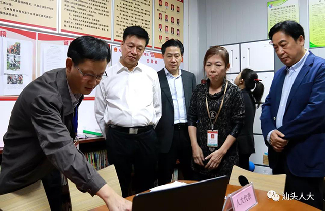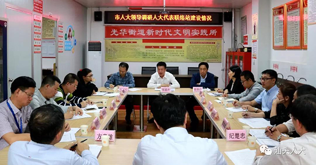 12月6日下午,市人大常委会代理主任郑通声带队赴金平区、龙湖区,对人大代表联络站(室)建设和活动开展情况进行调研。市人大常委会副主任杜怀丹,副秘书长王贵元参加调研。