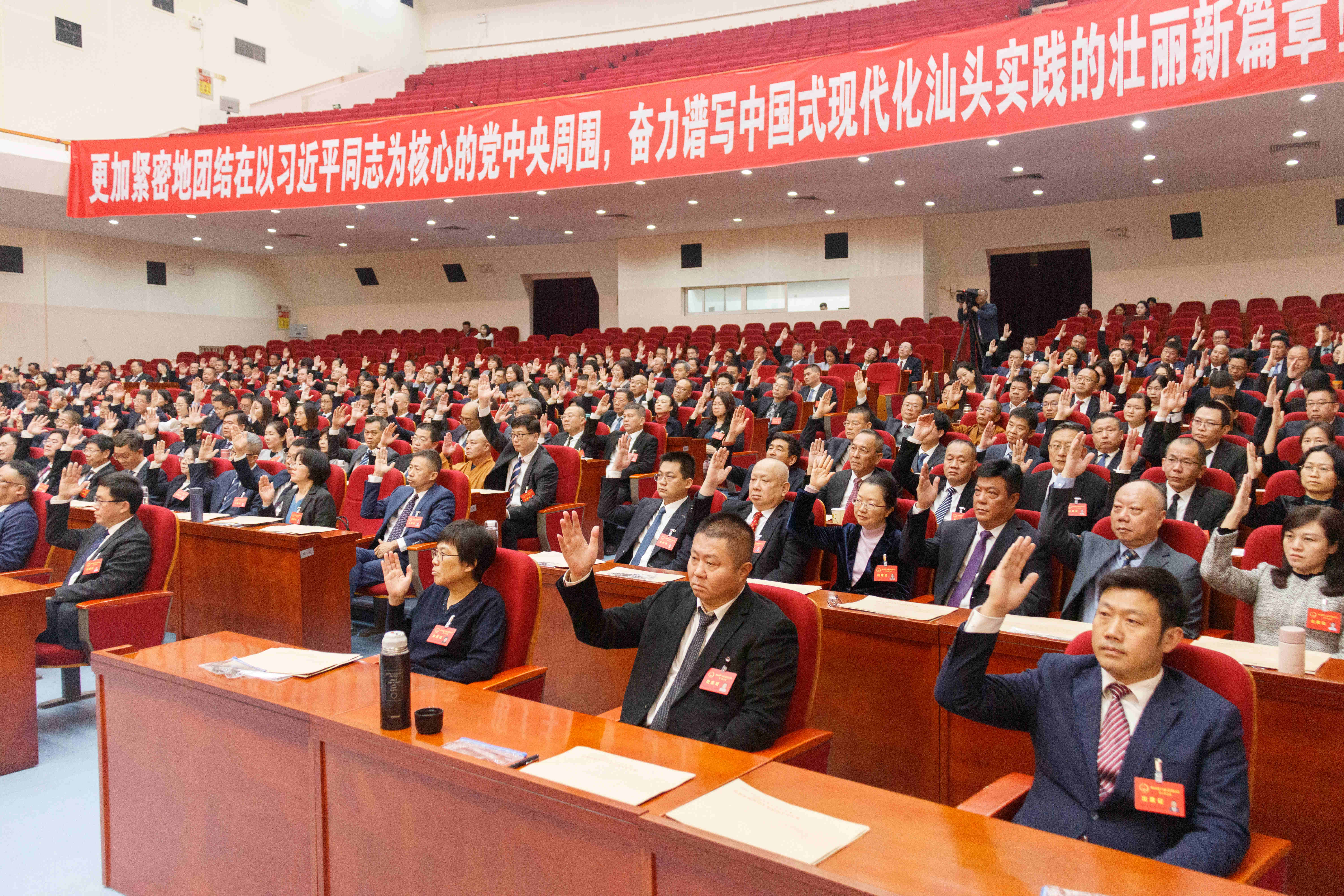市委书记温湛滨、市长陈涛、市政协主席邱奕辉在主席台就座。市委、市政府领导同志黄果、田晖、蔡永明、叶娴、张建国、李飞,黄海、朱朝荣,市中级人民法院、市人民检察院领导同志万云峰、林淑瑜,汕头大学负责同志喻洪,以及大会主席团其他成员在主席台就座。