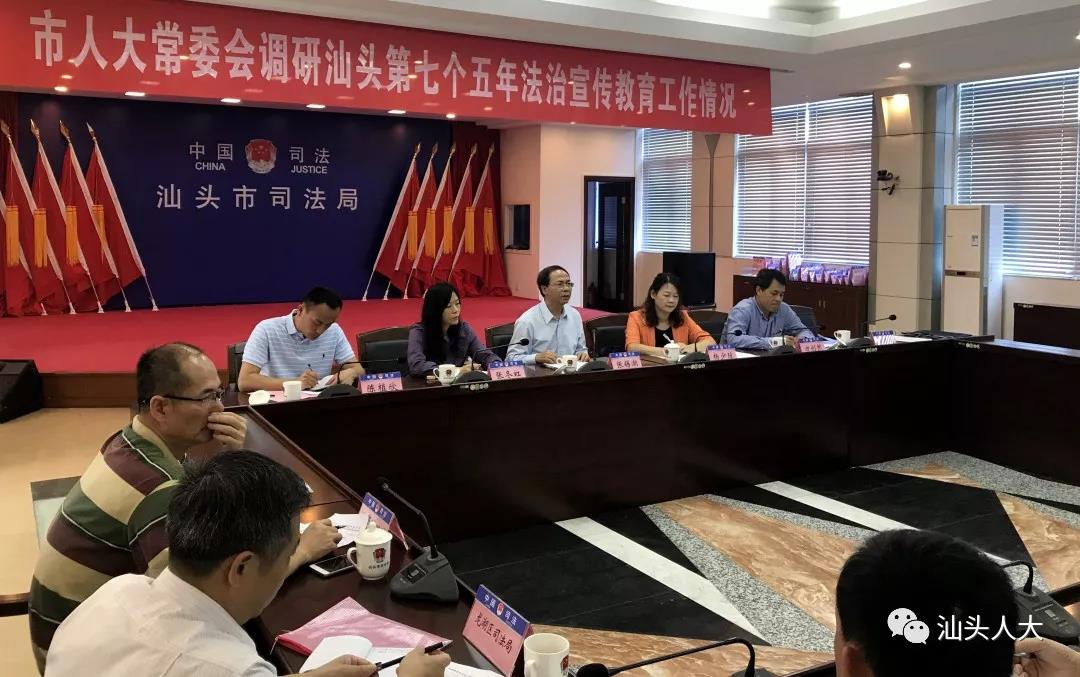 4月9日上午,市人大常委会监察司法工委主任张锡潮带队到市司法局,就加强法治宣传教育,做好“七五”普法规划的实施工作开展专题调研。部分市人大代表以及市司法局、市公安局、市人社局、市生态环境局、市应急管理局、市市场监督管理局、龙湖区政府等部门的负责同志参加活动。