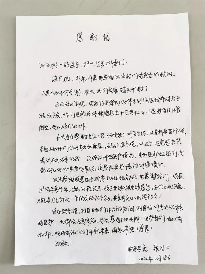 近日,汕大附一院呼吸内科收到一封特殊的亲笔感谢信。患者家属在信中向医疗团队表达了由衷的谢意。