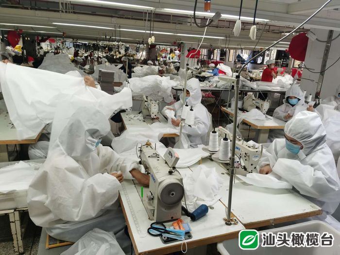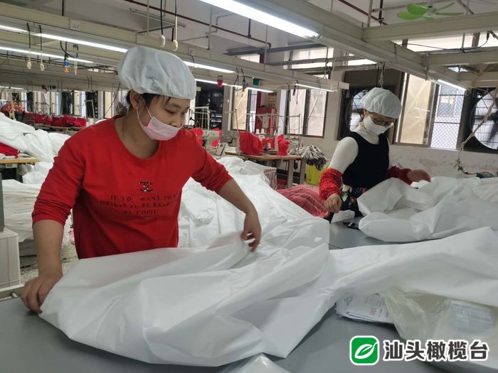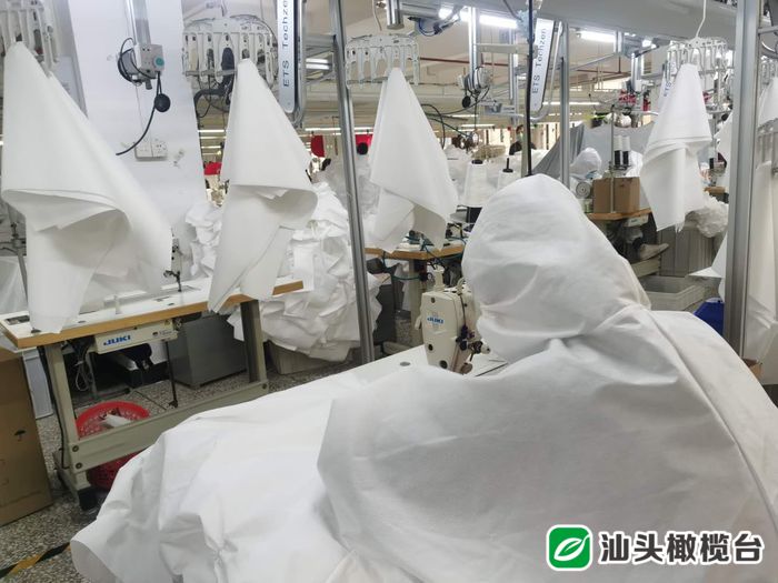 在潮阳区一家企业的生产车间内记者看到,4条防护服生产线和300多名员工正马力全开同时生产,按照目前的速度,每20分钟生产线就可以生产一件防护服,每天可生产医用防护服超过5000套。